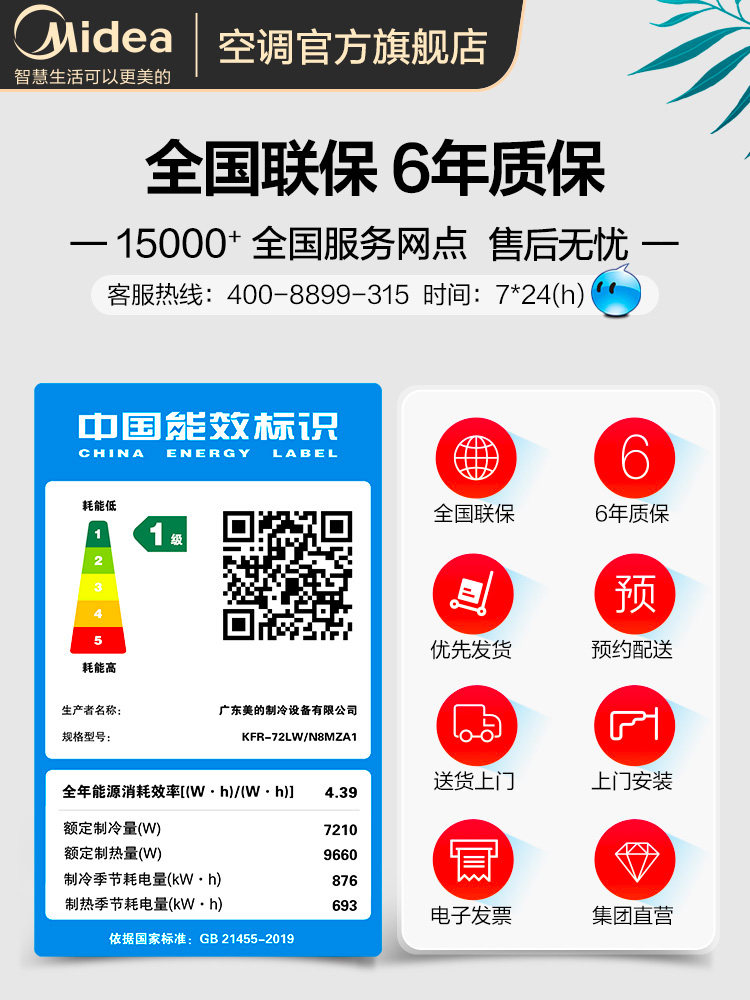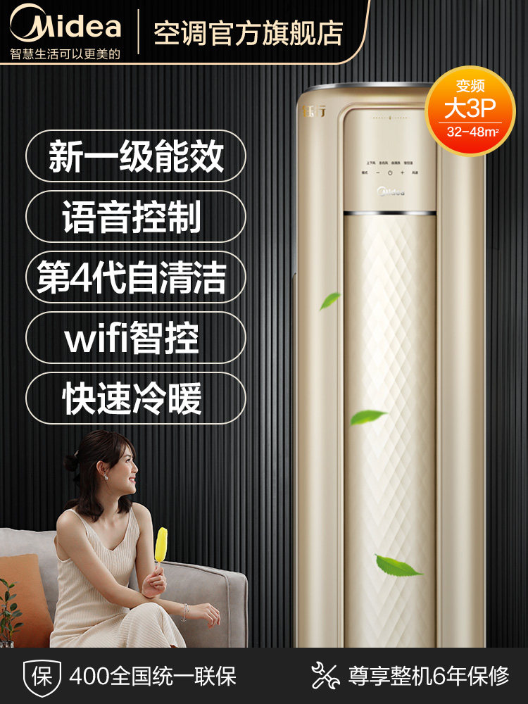 Midea first-class frequency conversion large 3-horse floor-standing air conditioning vertical living room 3p cylindrical cabinet machine Household smart appliances MZA