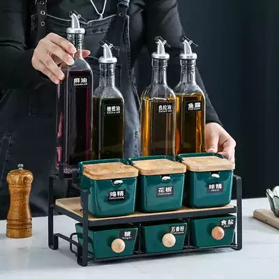 Ceramic seasoning jar, kitchen seasoning jar, household seasoning storage box, Nordic style flavor box, oil bottle combination set