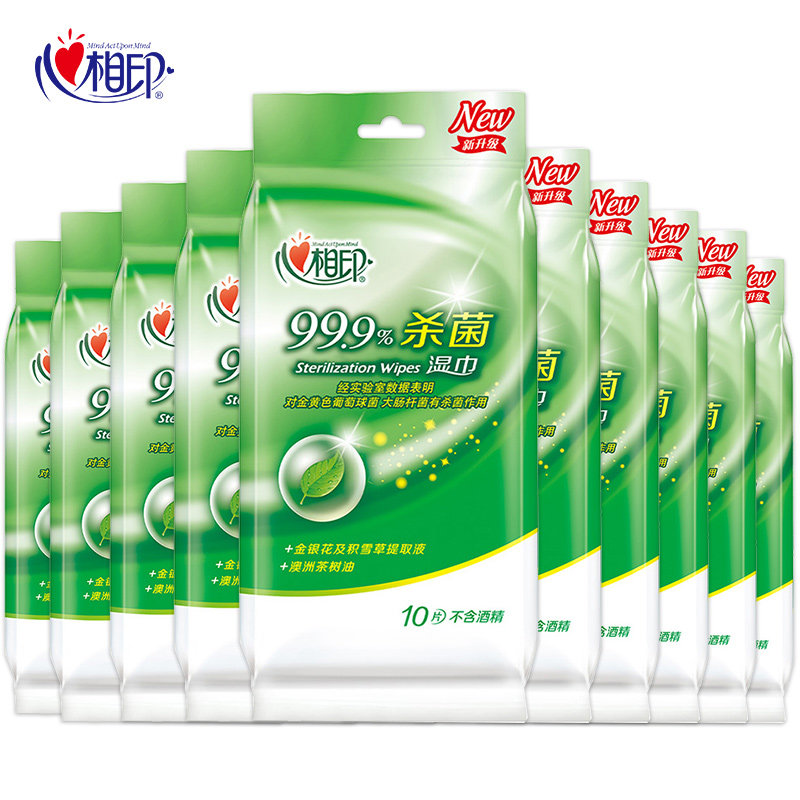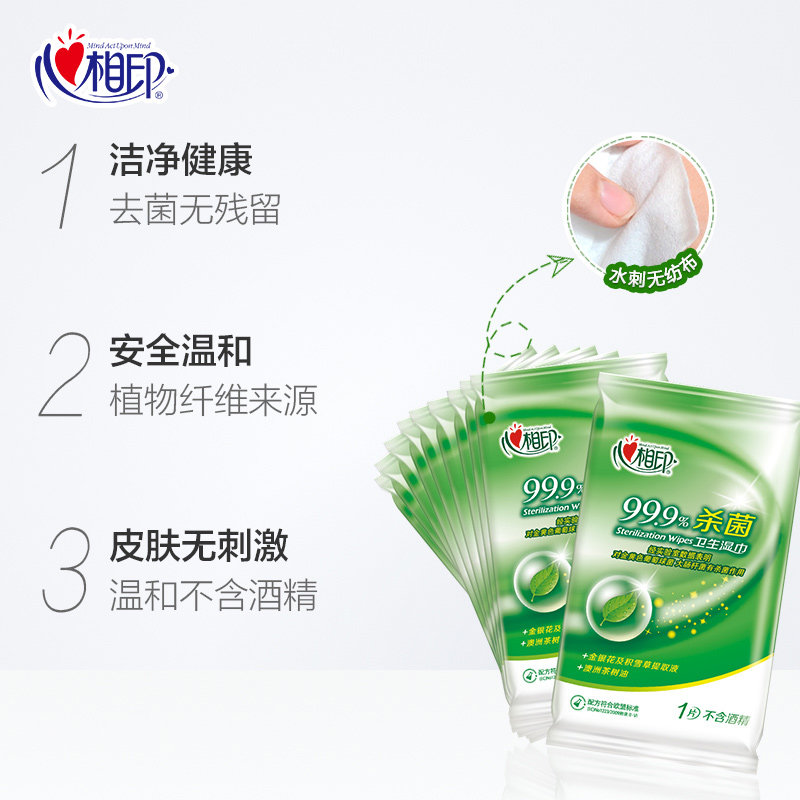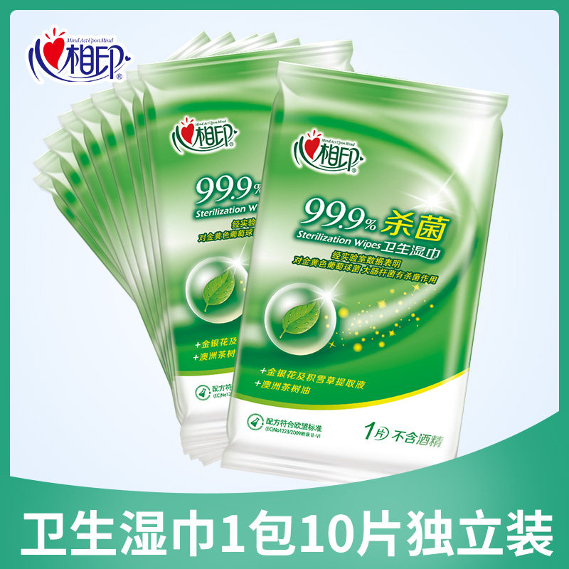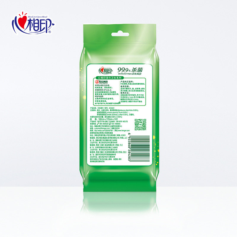 Heart-printed wet wipes small bag sterilization and disinfection student wet wipes a single piece carry-on portable disposable