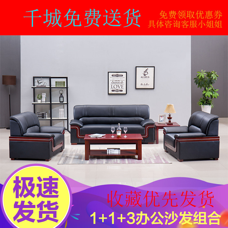 Real Leather Office Sofa Tea Table Combined Suit Lounge Business Guests Reception Modern Talks Trio Position Sofa
