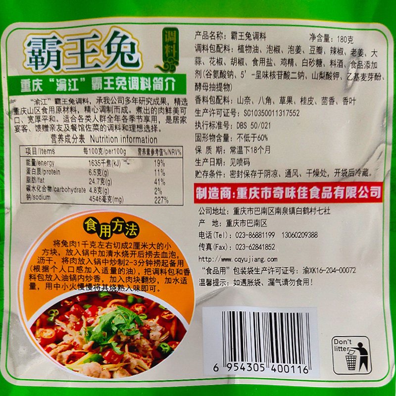 Yujiang Barking Rabbit Seasoning 180gx3 Bag Chongqing Jianjianghu Red Roast Beef Cattle Goat Rabbit Hemp Spicy Fever and Fatty Intestine ribs Zeppelin