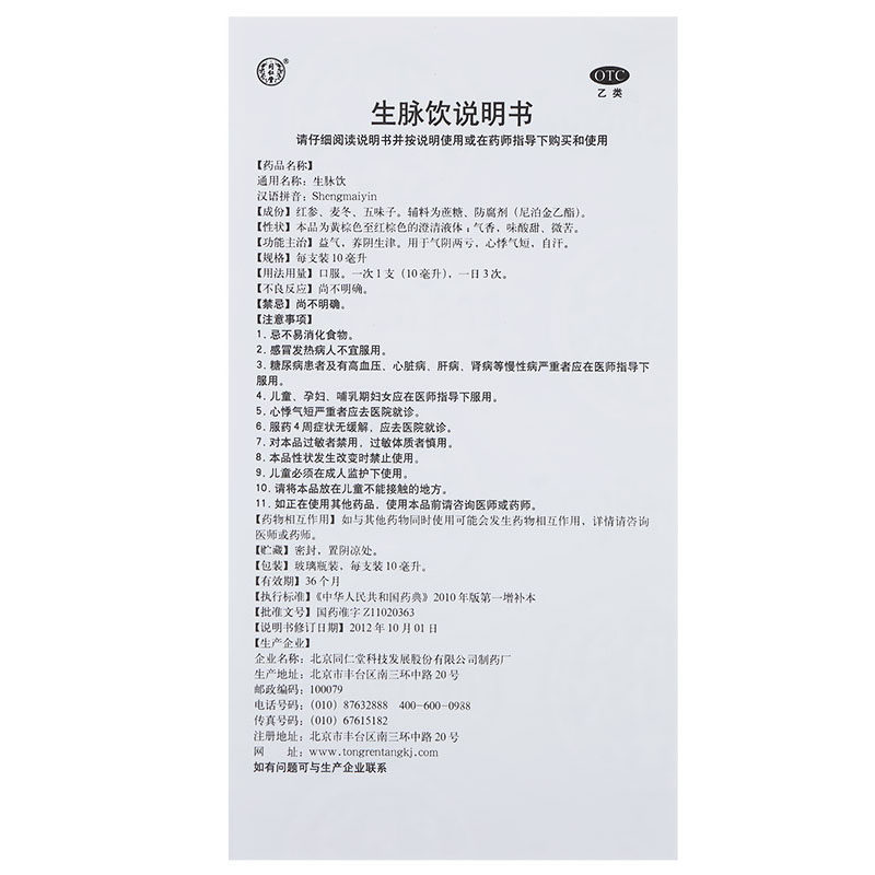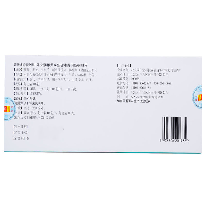In Tongrentang Pulse Drinking (Ginseng) 10 Qi and Qi Heart Palpitations for Short and Yin Sheng Yin Sheng Yin and Two Lots