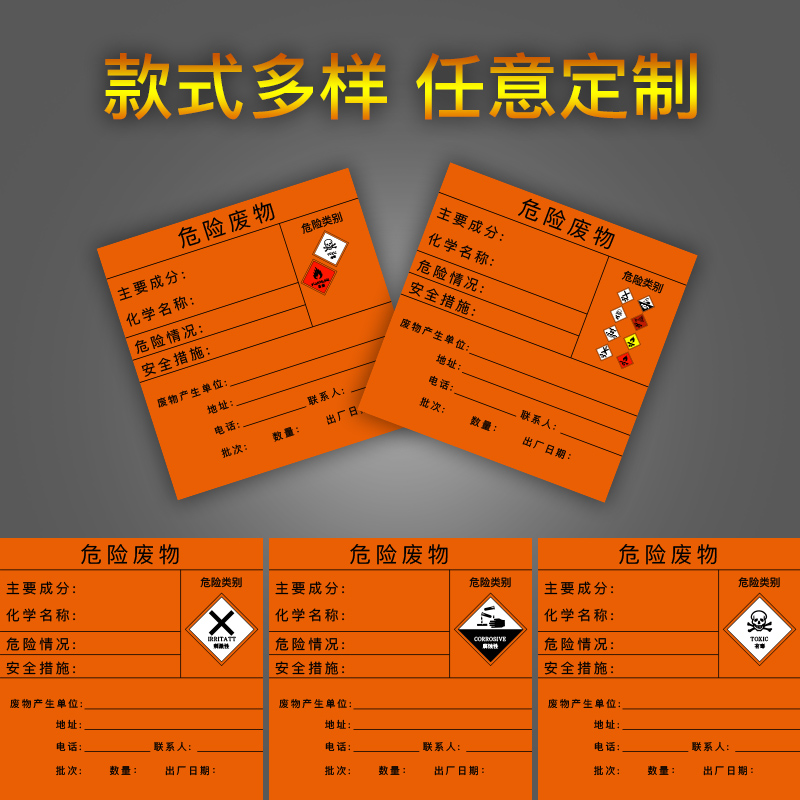 Hazardous waste signboard Dangerous goods signboard Hazardous waste label signboard PP adhesive warning sign Fire safety customized environmental protection management system Full set of warning stickers warning signs