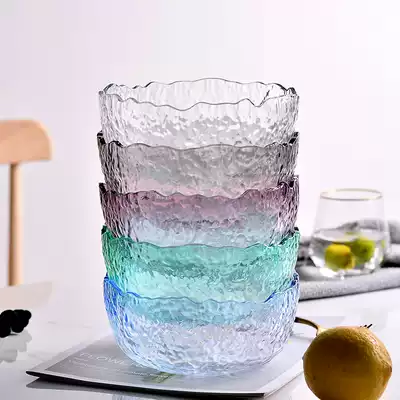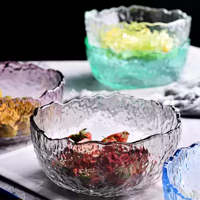 Nordic style creative hammer salad bowl household glass bowl living room cute dessert bowl fruit bowl hot noodle bowl transparent bowl