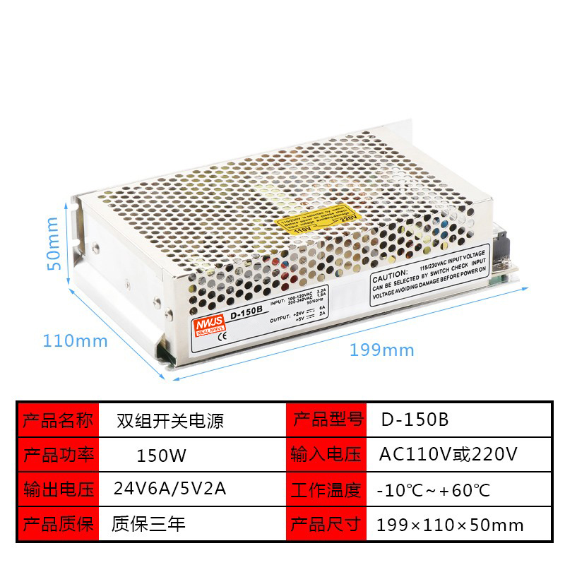 Mingwei switching power supply D-150B24V 5v dual two-way output isolated 24V6A 5V2A DC power supply