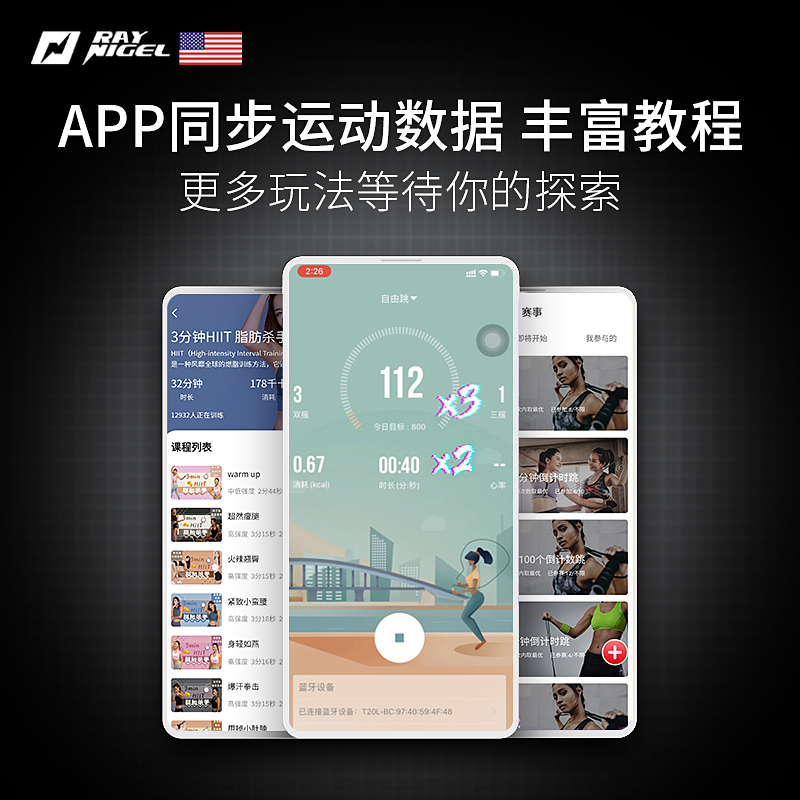 American Raynigel Jump Rope Wireless Money Intelligent Count Fitness Rope Girl Weight Loss Sports Professional Middle Test Jump Rope