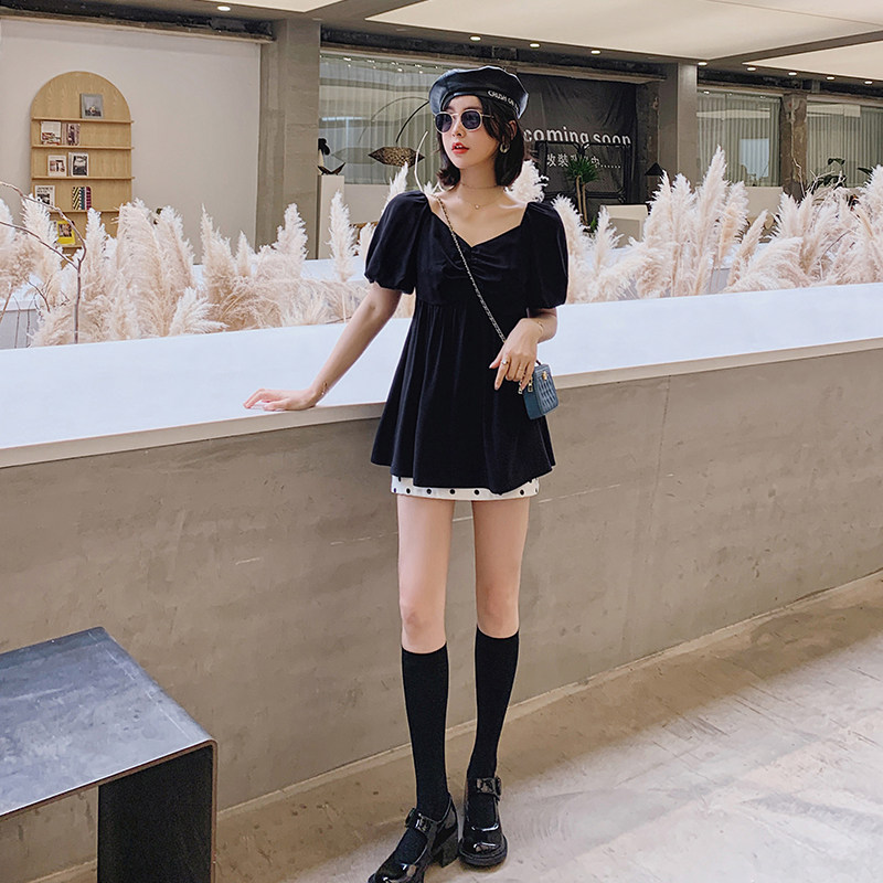 Blue Language Wears Fat Sister MM Meat Collection V Console T Shirt 2023 Summer New Skin Short Skin Tops