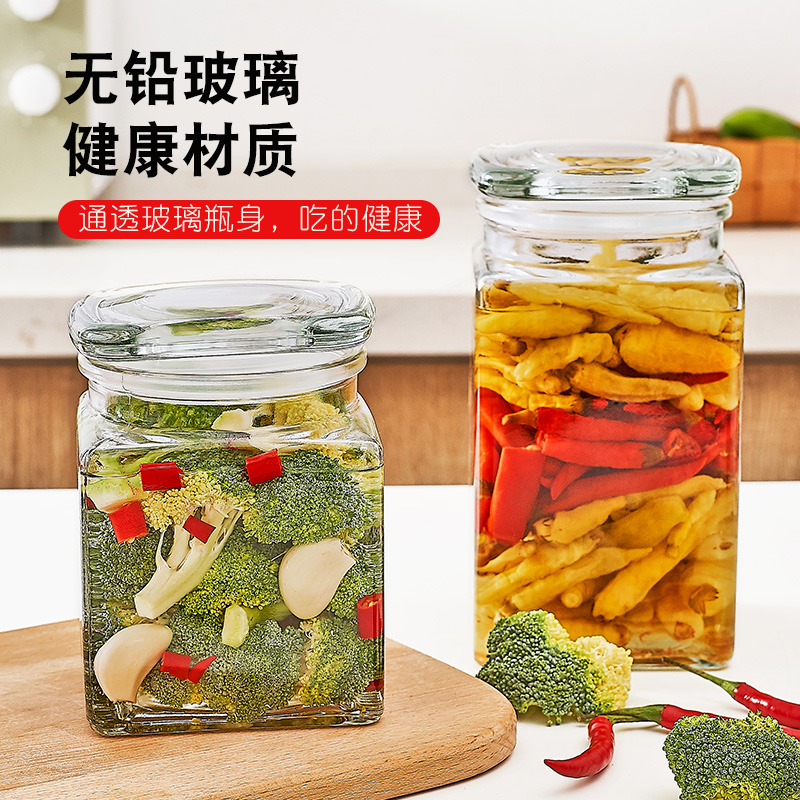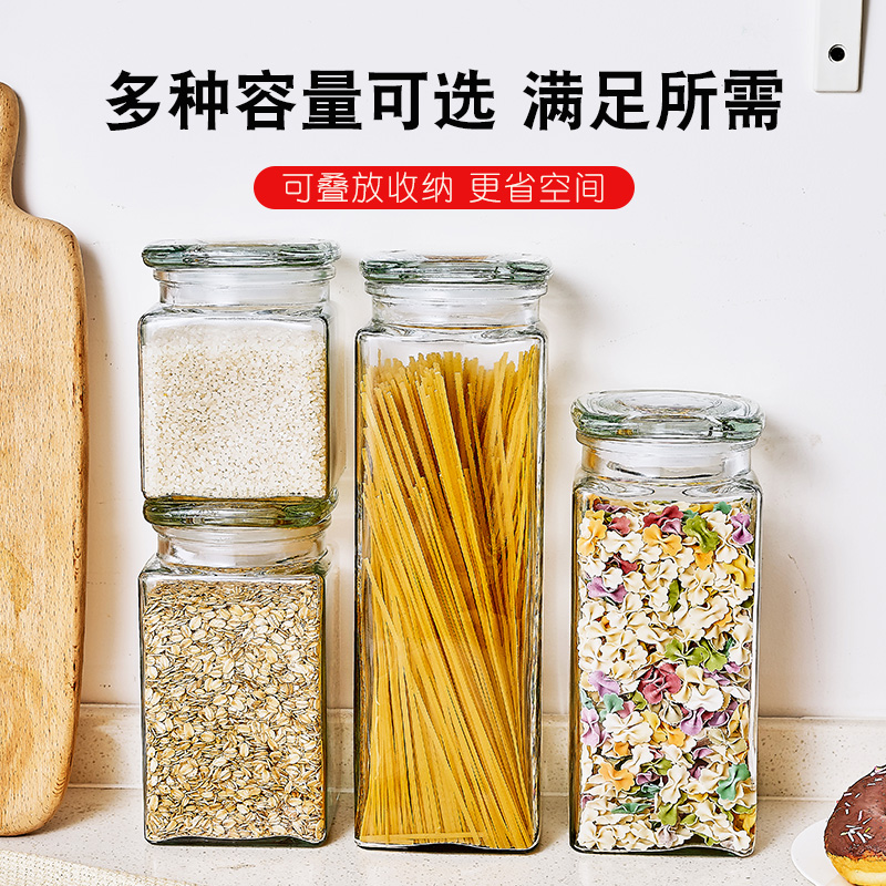 Transparent home Kitchen Storage Tank Seals Moisture-grade Food Grade Square Glass Miscellaneous Cereals Containing sealed tank Large number