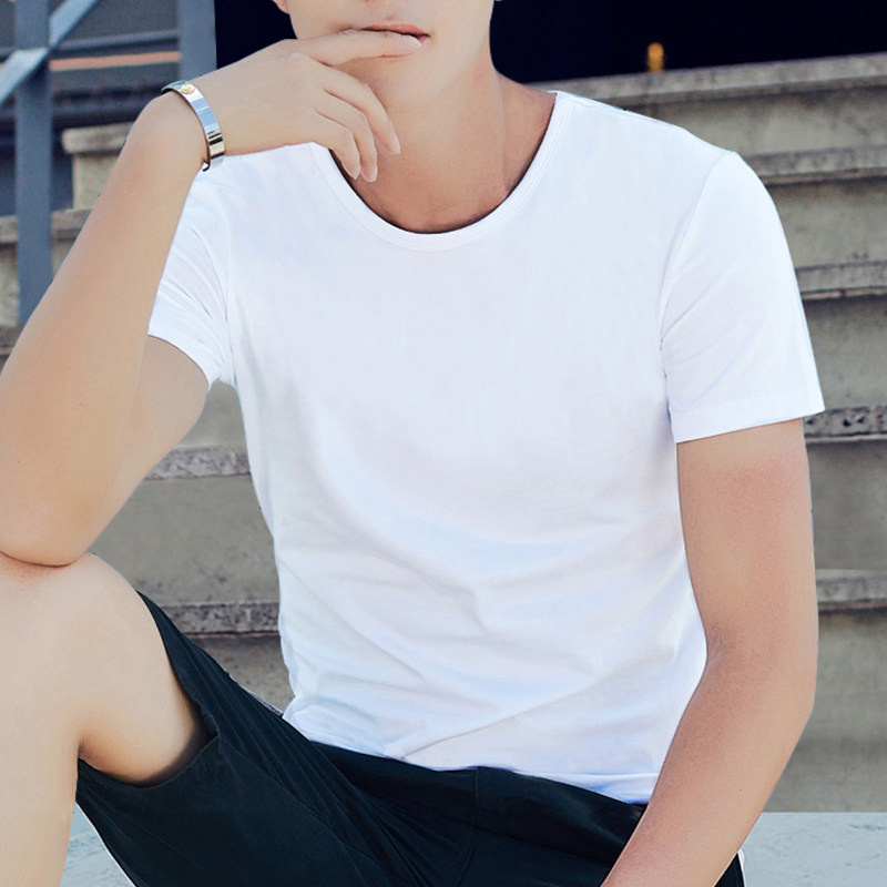 Blue Ningqu Men Short Sleeve T-shirt Pure Cotton Pure Cotton Pure White Black Blank Blood Brief About Simple Undershirt Summer