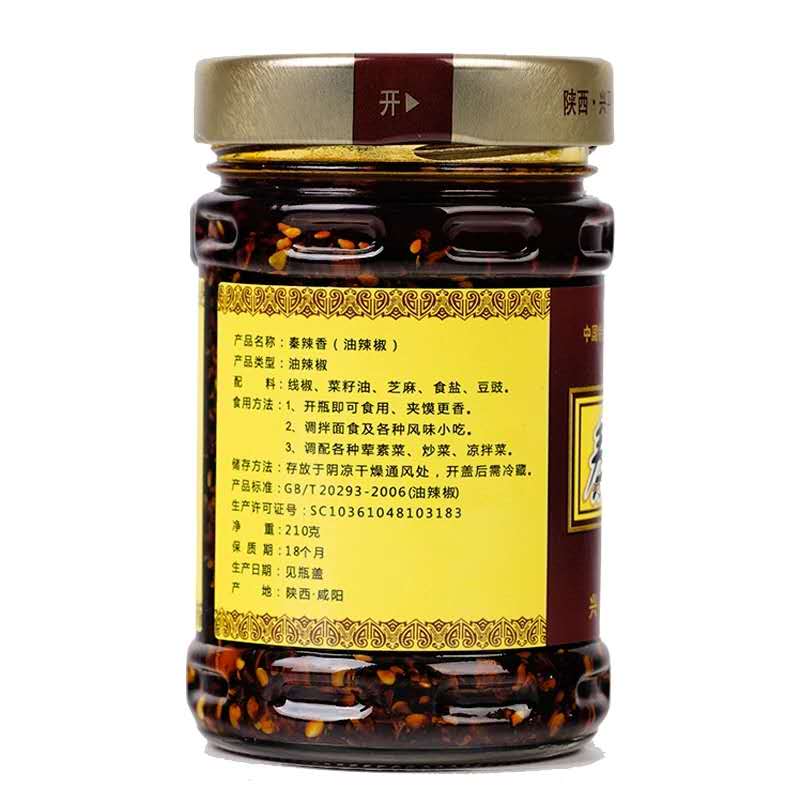 Oil splashout spicy Qin green chilli sauce Shaanxi Xingping Line peppers and spicy sesame oil spicy seasonings 210g