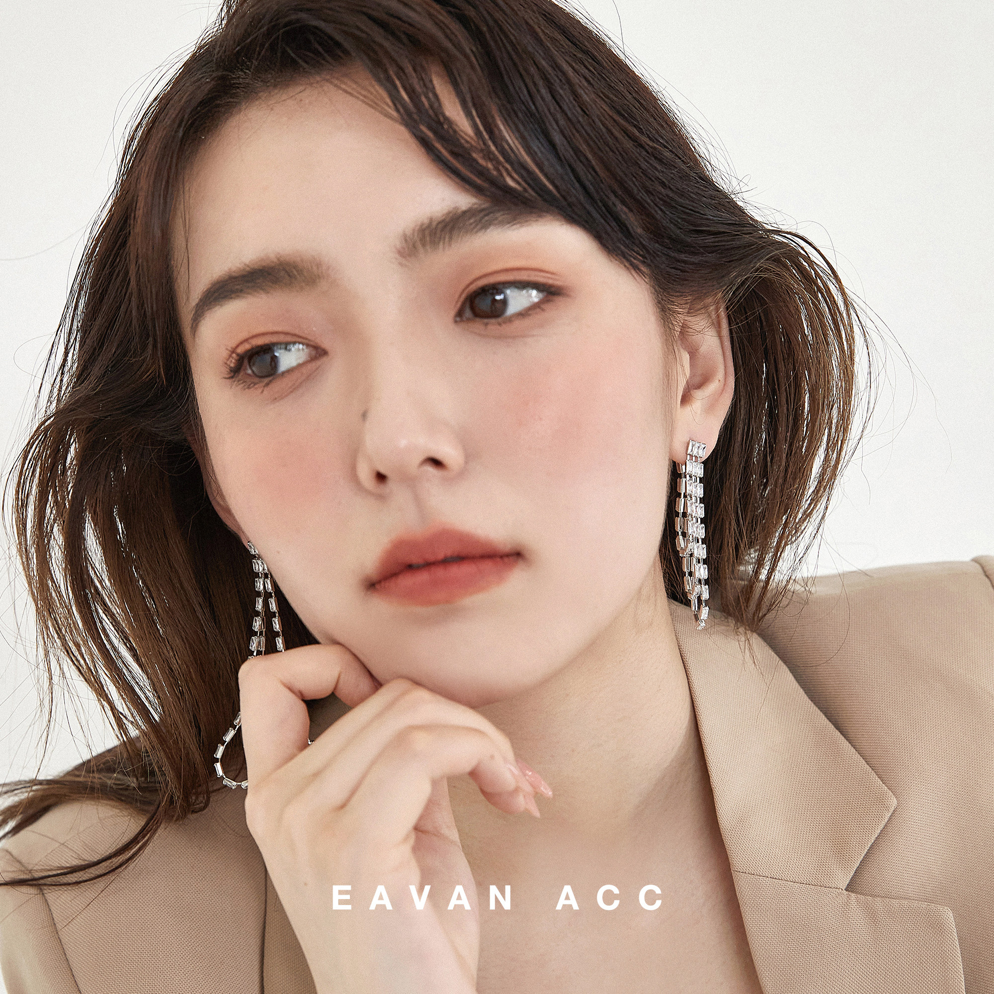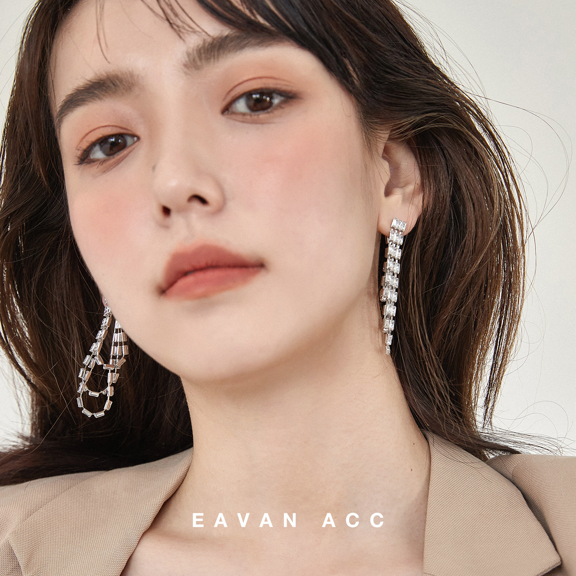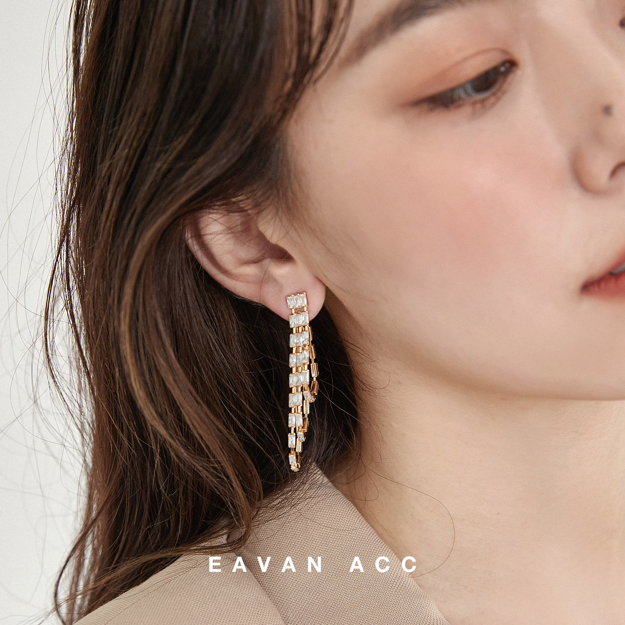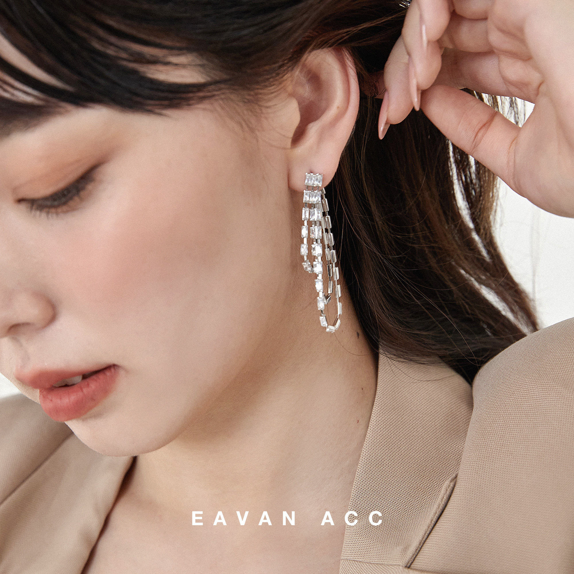 EAVAN ACC original light luxury streamlined diamond earrings wild niche cold wind long earless pierced ear clip
