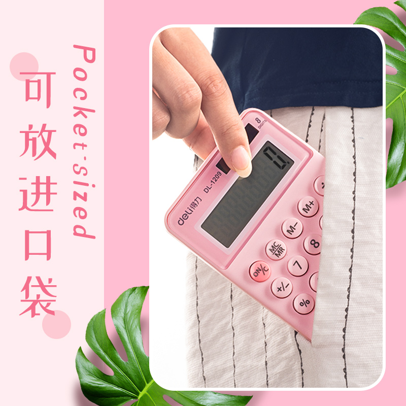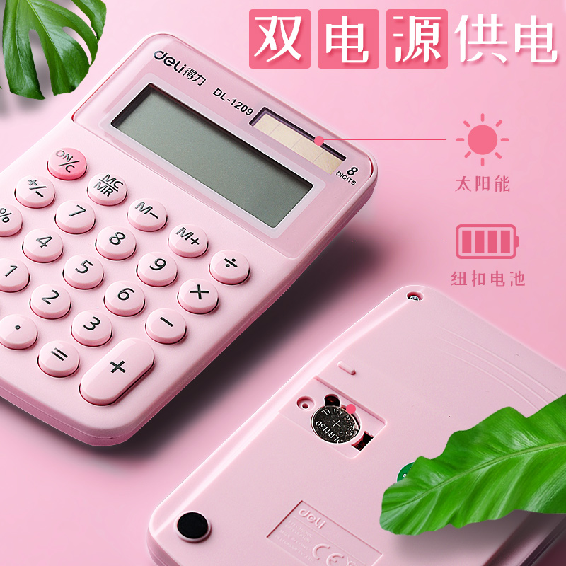 Deli ins pink calculator Female high face value mini portable small meter tablet computer portable fashion accounting special small cute creative net red Korean version of girls large candy color