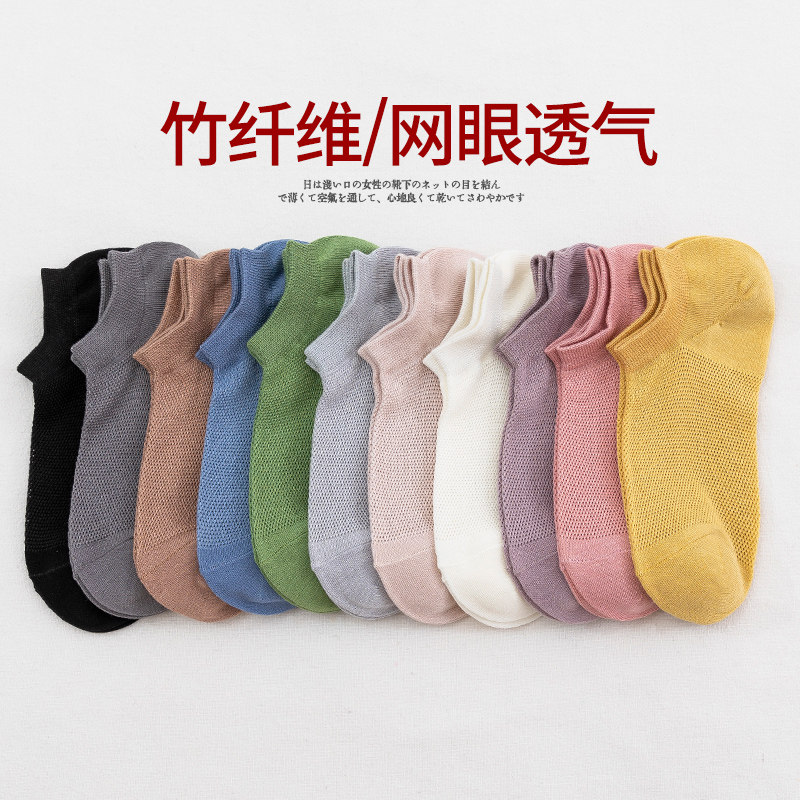 Bamboo Fiber Socks Woman Summer Thin Cash Socks Mesh Breathable Deodorant Low-Help Lady Shallow Mouth Boat Socks Summer Women Socks