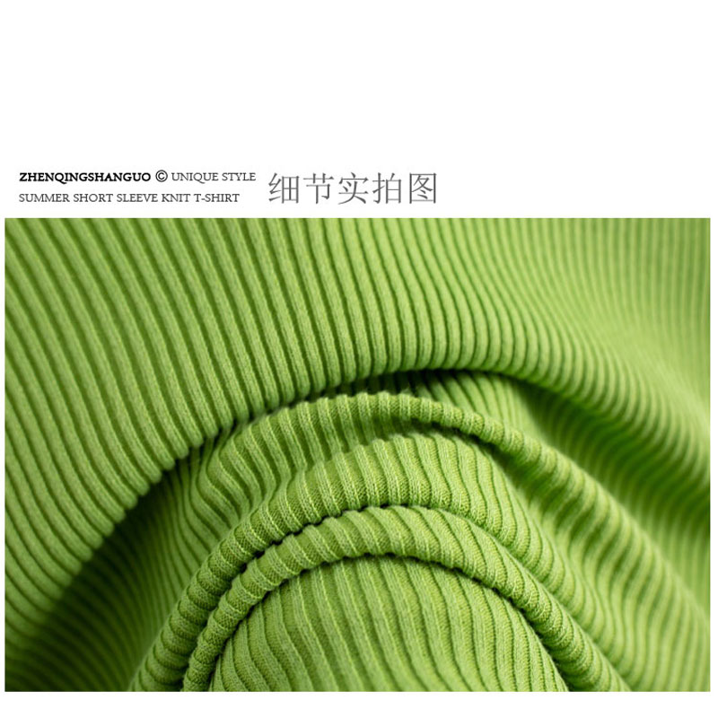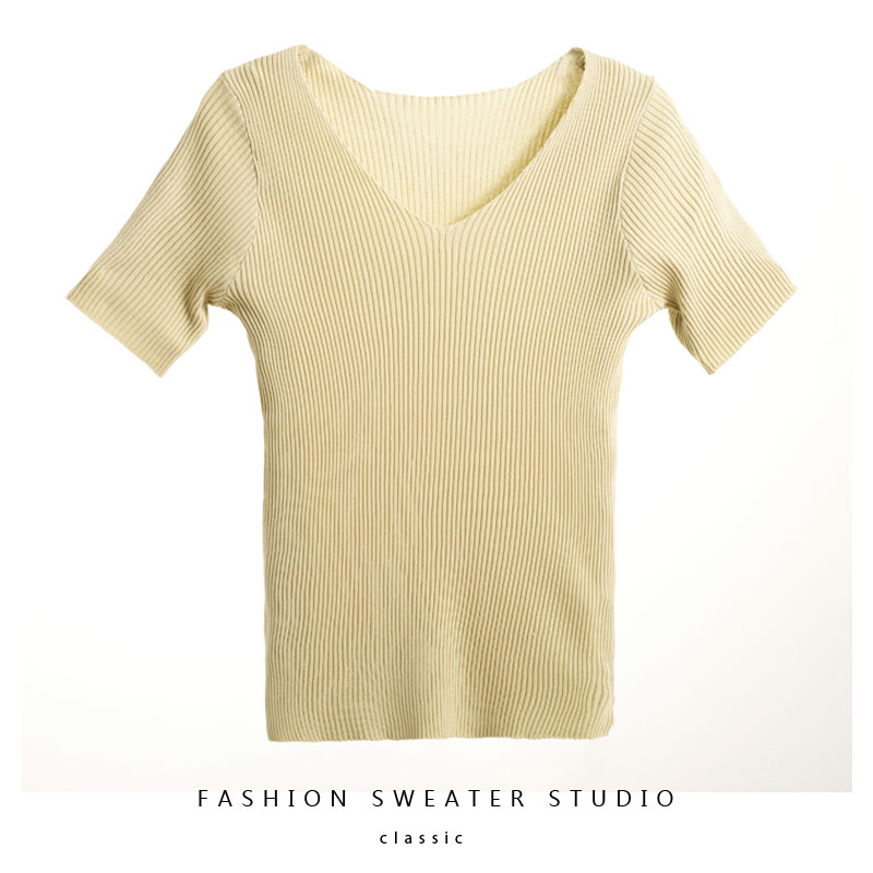 2021 new ice-wire knit T-shirt woman with slim fit V collar short sleeve Summer thin Korean version large size with fat mm blouses