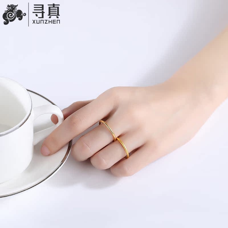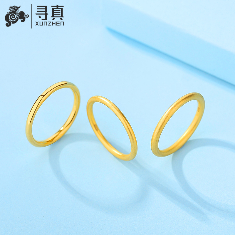 Pure gold 999 gold ring ring female Sansheng III fine smooth ring 3D hard gold frosted pure gold tail ring