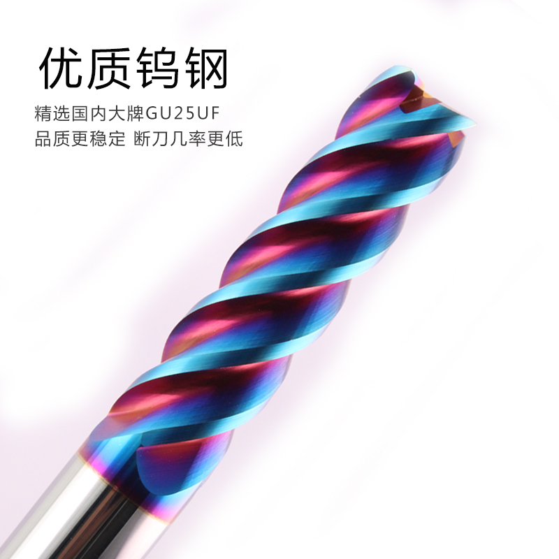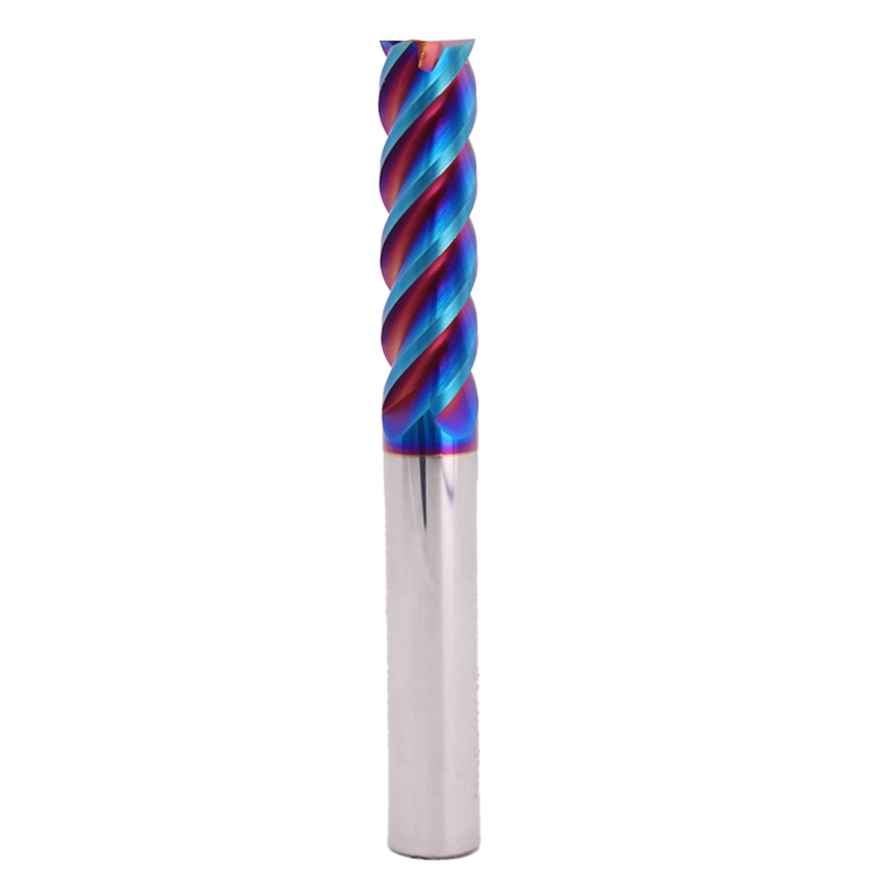 65 degree cemented carbide high hardness milling cutter Blue nano coating end mill 4-edge flat bottom extended die steel milling cutter