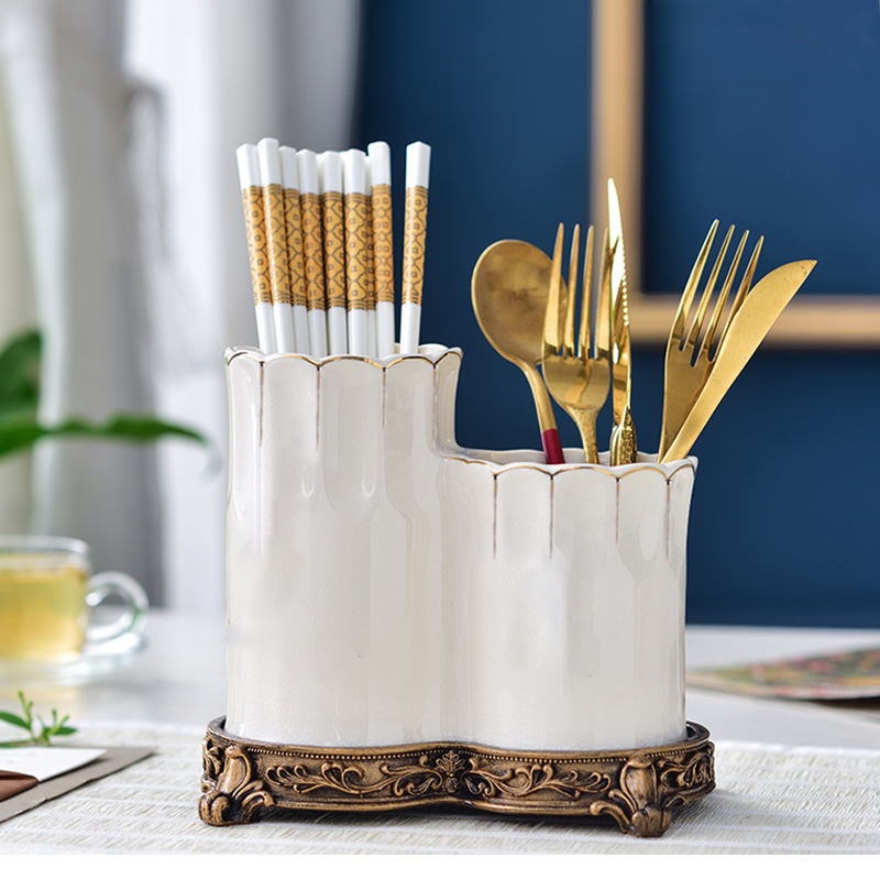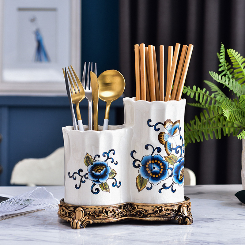 Ceramic chopsticks holder spoon storage rack European-style Phnom Penh drain chopsticks barrel kitchen tableware double-layer creative chopsticks cage