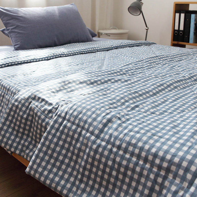 Simple light blue small grid cotton summer cool quilt soft cotton air-conditioning quilt single cotton double summer cool quilt core cover quilt
