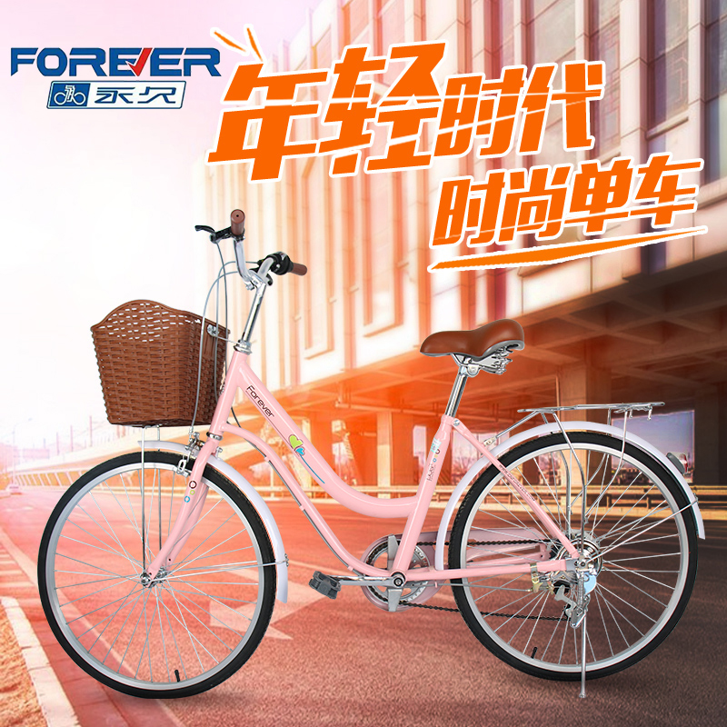 Shanghai Permanent Bicycle Lady 24 inch light city bike students to step fashionable retro lady bike
