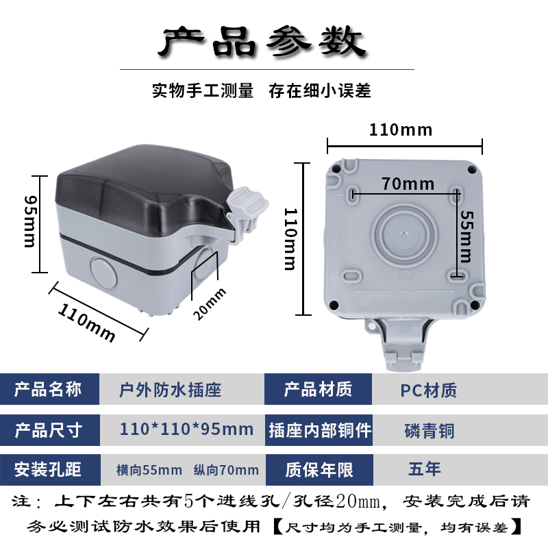 IP66 outdoor 16A 3 holes Rain proof water socket New energy car outdoor bathroom charging with lid sub socket