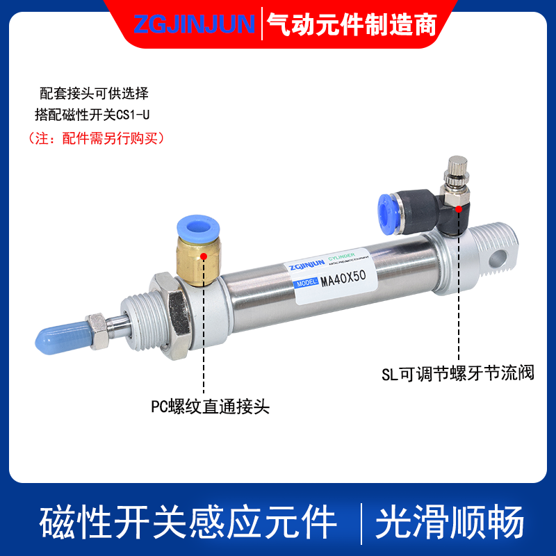 Stainless steel Mini small cylinder MA40x25x50x75x100x125x150SCA with magnetic adjustable small pneumatic