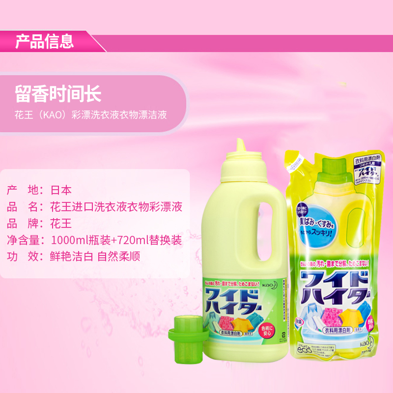 Kao color bleaching liquid Japan imported laundry detergent stubborn stain cleaner set 1000ml bottle 720ml bag