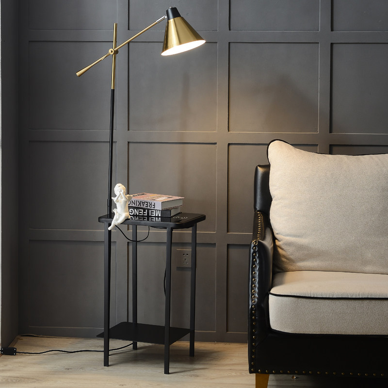 Coffee table floor lamp simple modern Nordic light luxury American living room bedroom bedside wireless charging with table lamp