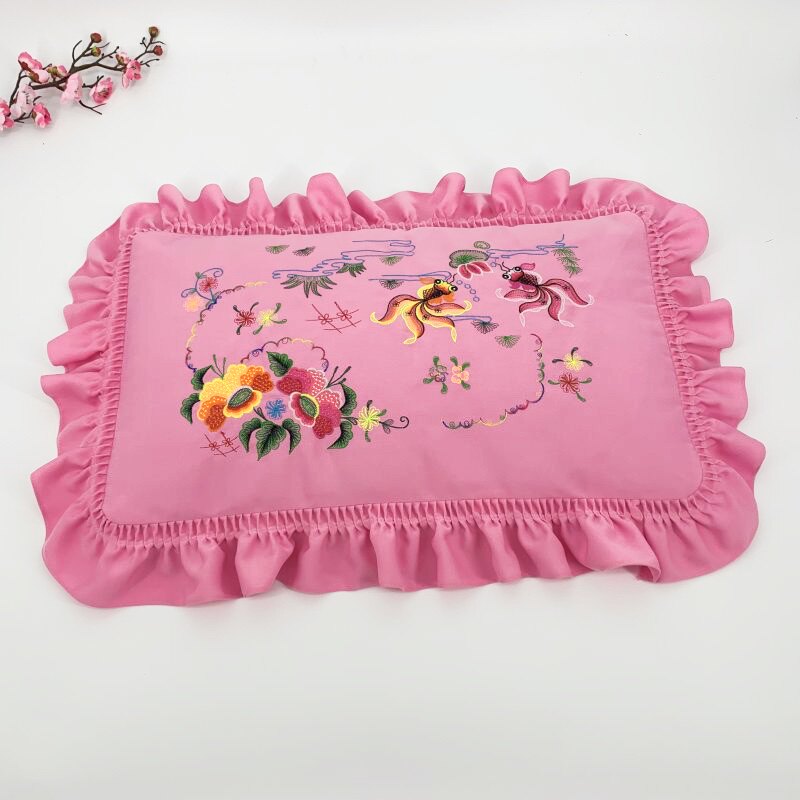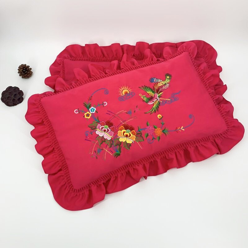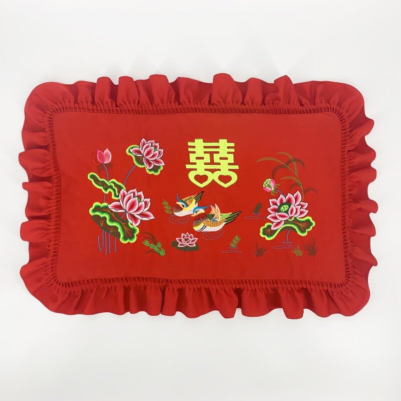 Wedding New Single Pillow With Escort Back Gift Couple Embroidered Pillowcase Embroidered Lotus Leaf with a pair of clothes without pillow core