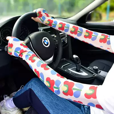 Spring driving sunscreen ice silk sleeve printing outdoor driving arm gloves sleeve spring female