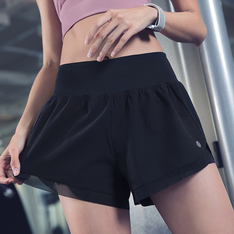 Quick-drying sports shorts women's summer anti-glare loose running fitness pants lined casual net celebrity high waist yoga pants