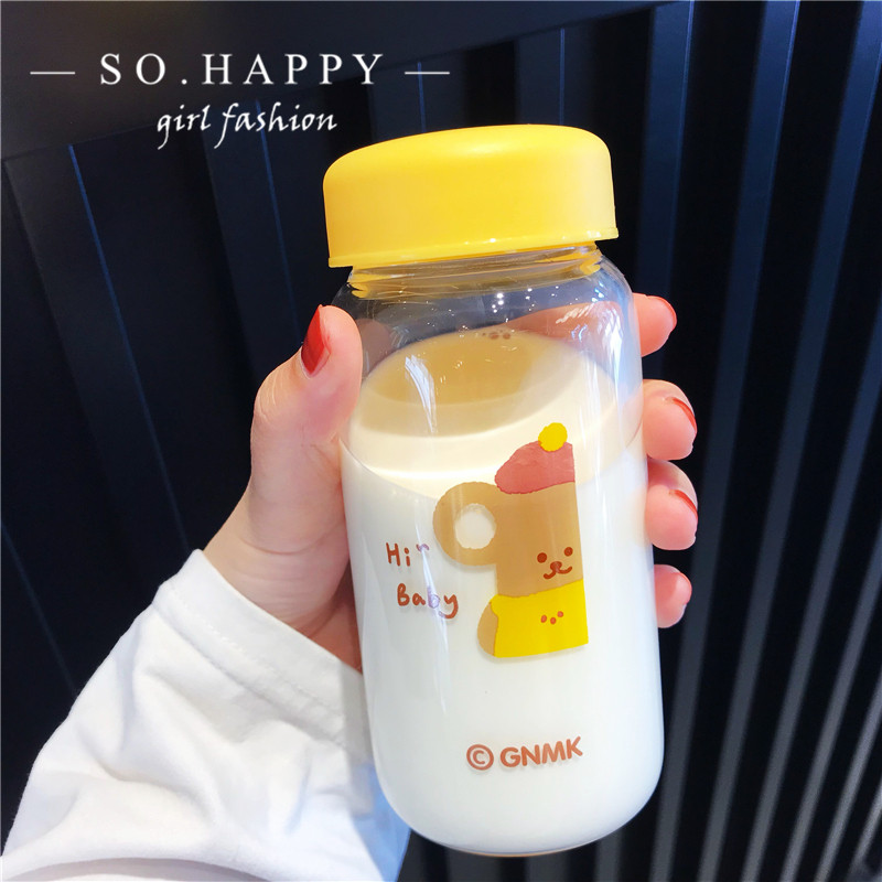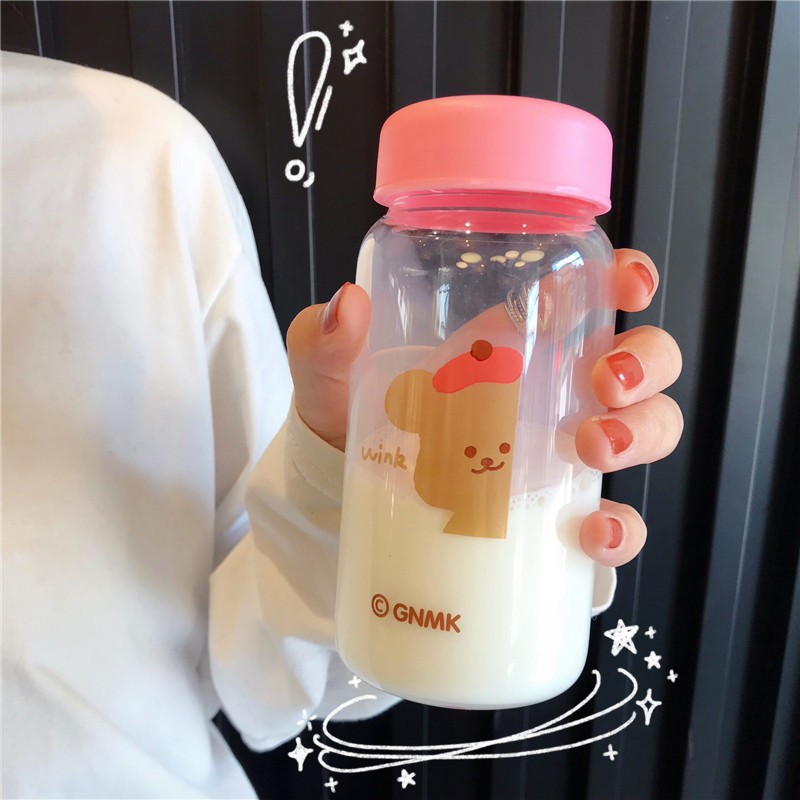 ins net red cute bear brief water cup cute girl's heart student transparent glass cup korea fresh accompanying cup