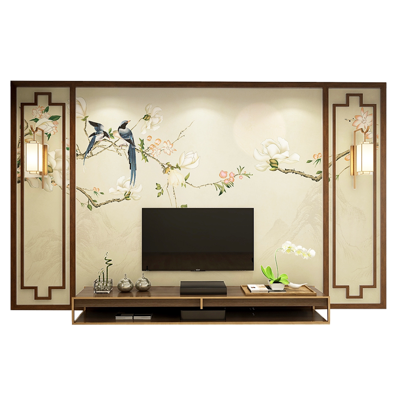 New Chinese TV Background Wallpaper Living Room Film and Television Wall Flowers and Birds Light Luxury Wallpaper 3d Stereo Mural Chinese Wind Wall Cloth
