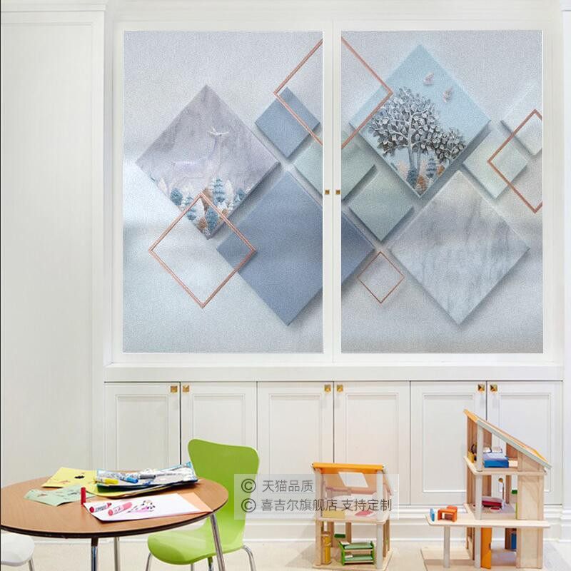 Bathroom powder room glass door glass sticker anti-penetration anti-peeying window frosted sticker Nordic geometric Elk