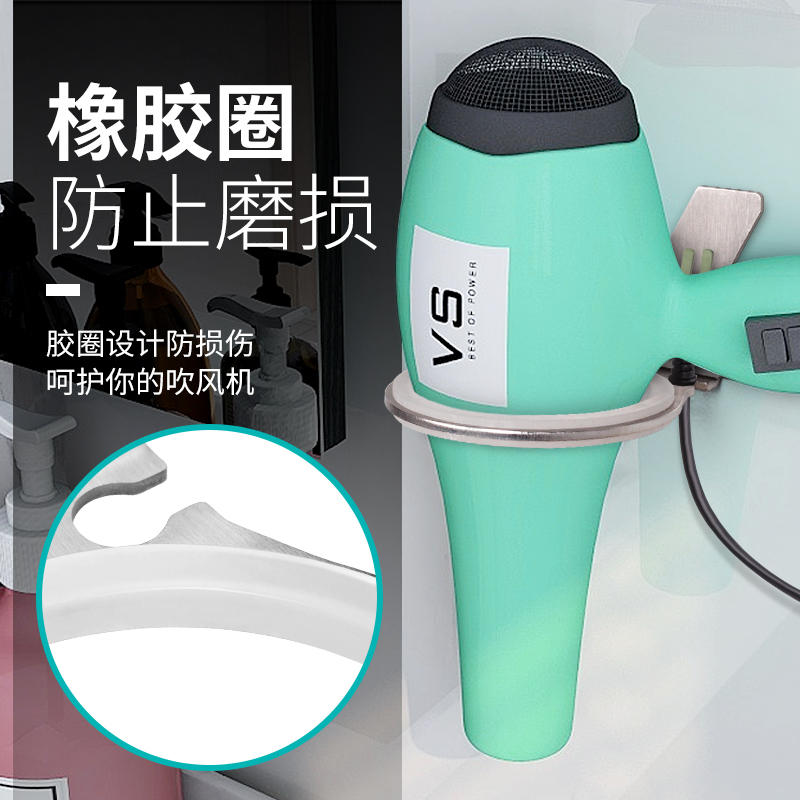 Hair dryer rack free punching home bathroom dressing room discharge hair dryer hanger wall-mounted stainless steel hair dryer rack