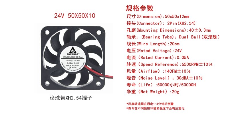 New DC24V 5CM 5cm 50x50x10mm double ball brushless cooling small fan