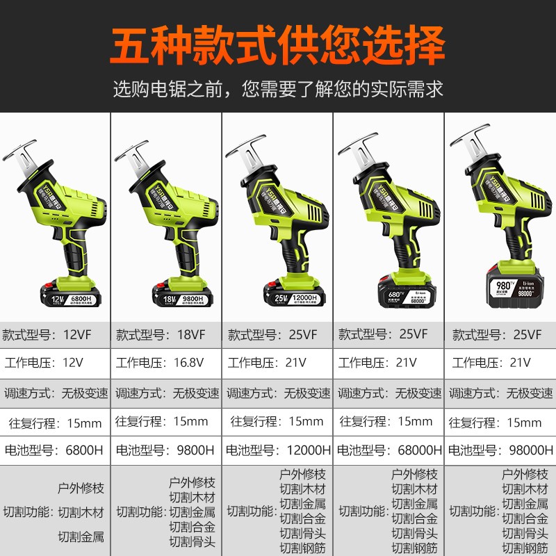Rechargeable reciprocating sawdust wireless punching electric hand according to high power wireless lithium electric small electric saw wood electric logging saw