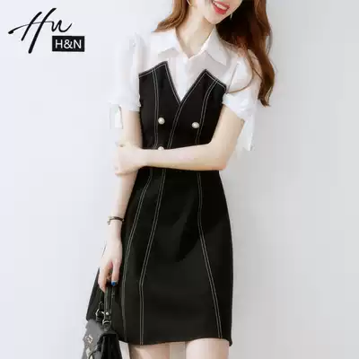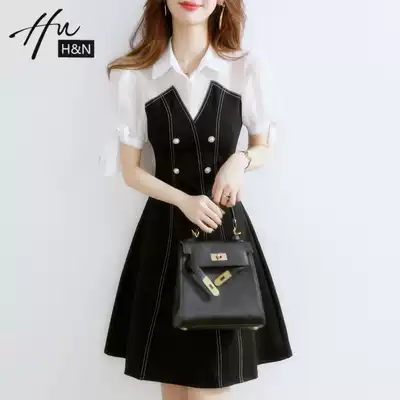 French niche Platycodon grandiflorum skirt fake two dress 2021 spring dress New temperament waist thin A- line dress tide