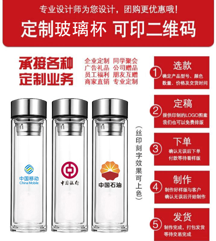 Custom-made double-layer glass opening commemorative tea cup advertising small gift cup custom-made logo lettering printing