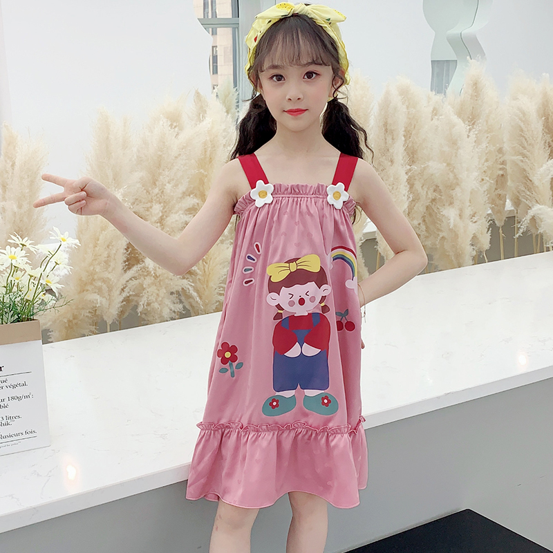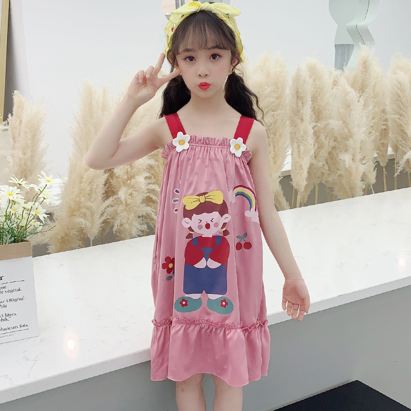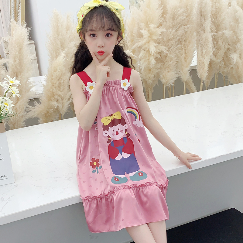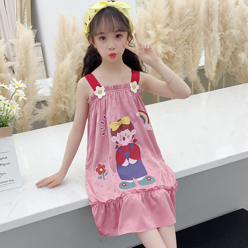 Girl Sleeping Dress Ice Silk Summer Thin Children Pyjamas Girl Cartoon CUHK Kid Harnesses Cute Super Cute Home Dress