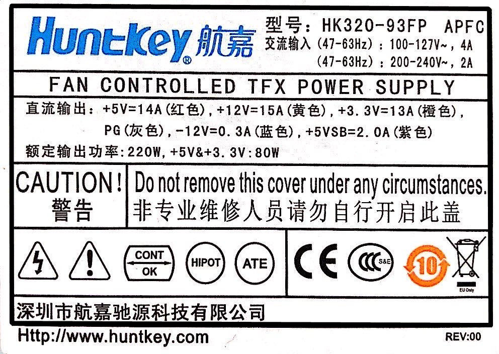 Huntkey HK320-93FP rated 220W full voltage industrial computer dedicated power supply small 1U POS machine Flex power supply