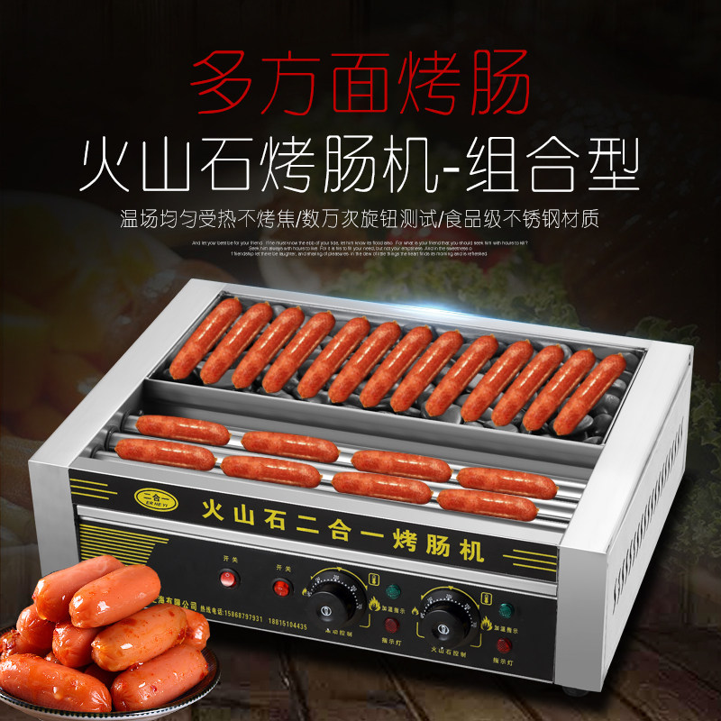 Commercial small mini two-in-one electric automatic temperature control Volcanic stone sausage machine Grilled ham Taiwan Hot Dog machine