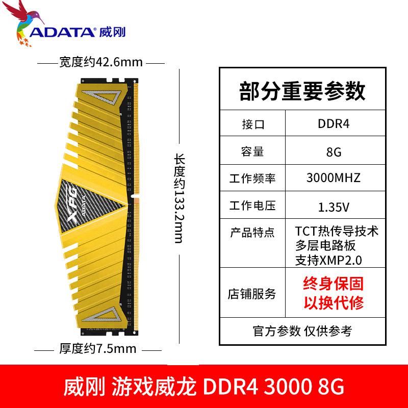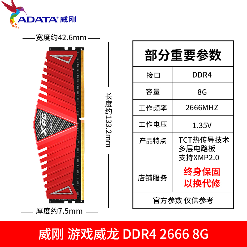 ADATA Memory DDR4 8G 2666 3000 3200 3600 Desktop XPG Games Veyron Vest Strip