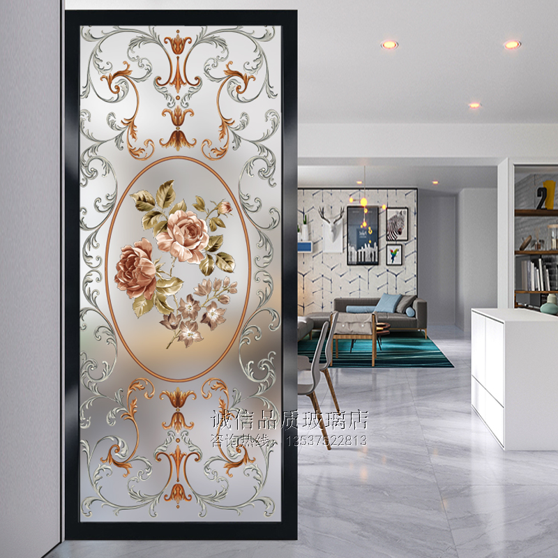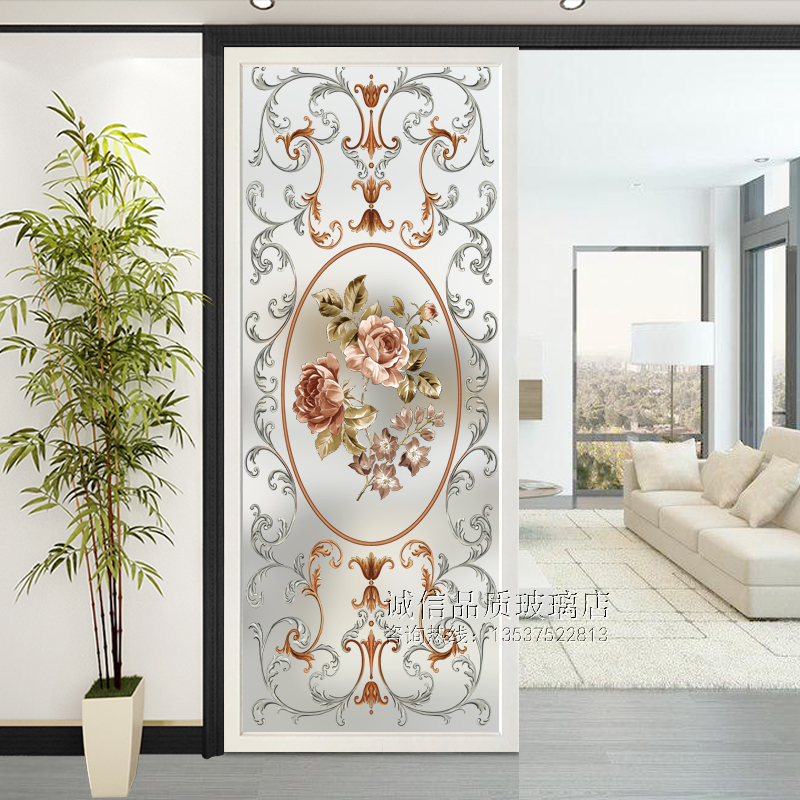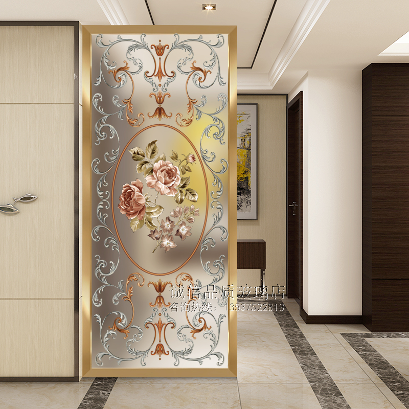 Art glass partition aisle Corridor entrance Double-sided translucent frosted craft painted tempered entry home decoration flowers