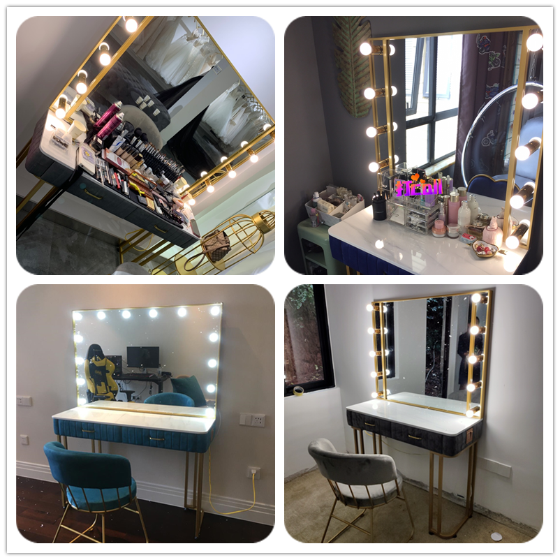 Marble studio dressing table beauty salon wedding dress shop studio special table makeup artist professional mirror with lights