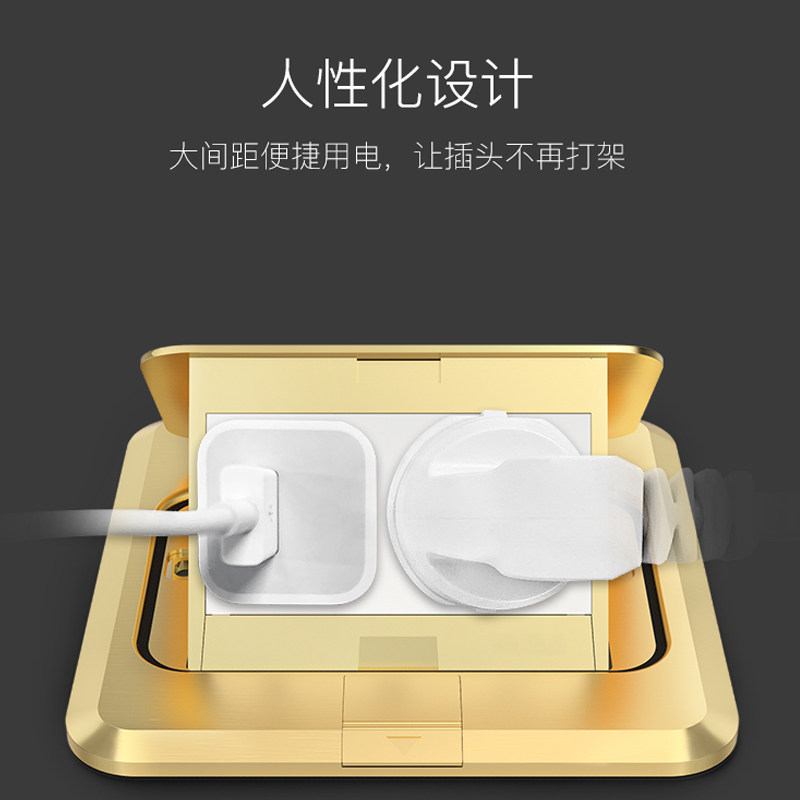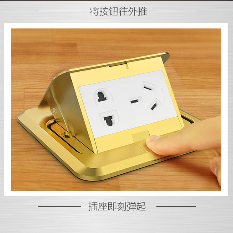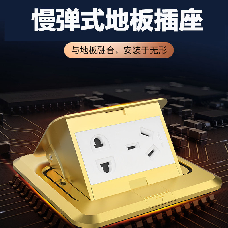 Floor plug household engineering hidden gold five-hole socket ground plug slow bounce hotel yellow copper ground plug