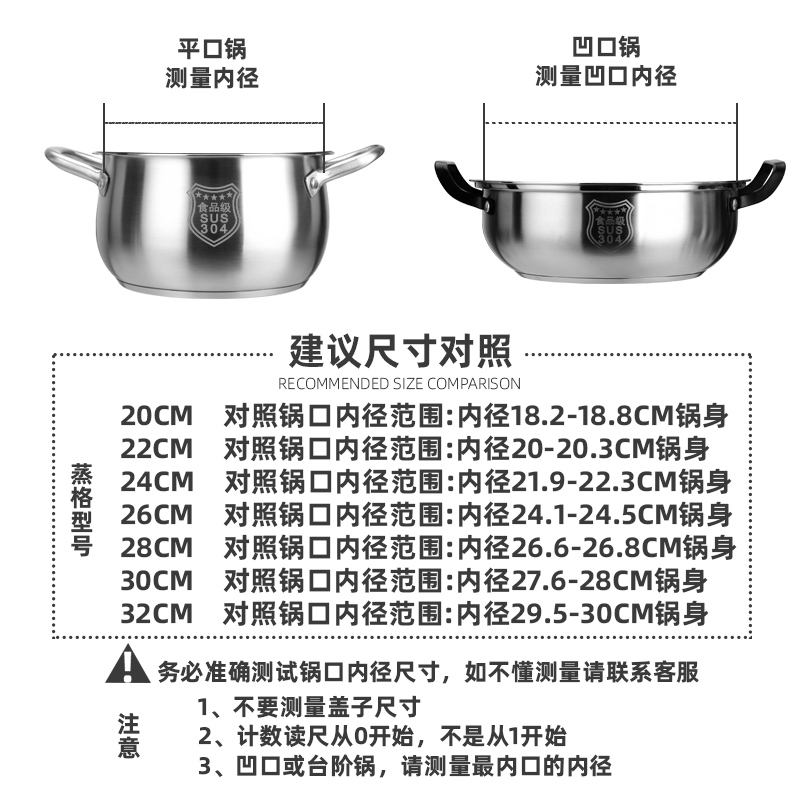 304 stainless steel steamer household steamer non-staple food milk pot soup pot steamer steamed bread steamer steamer layer 20-32CM small steamer