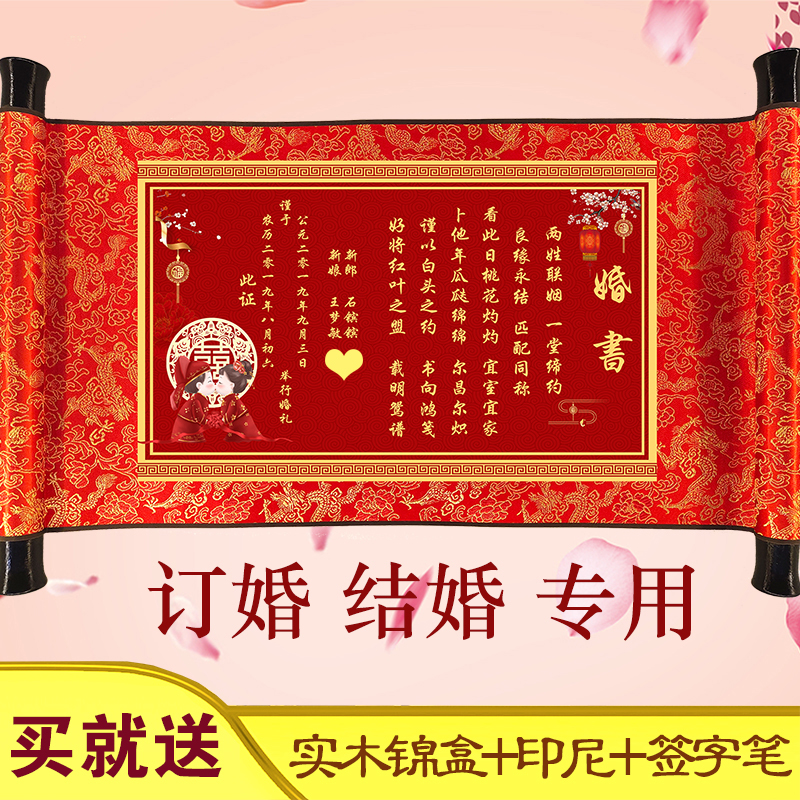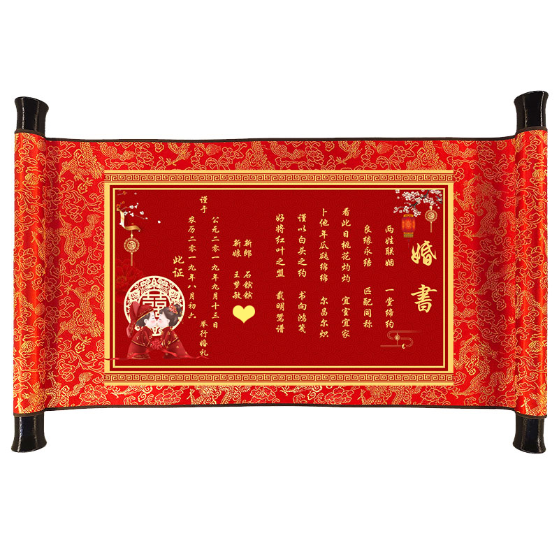 Handwritten Wedding Book Engagement Book Custom Letter Fabric High-Grade Scrolls Send Day Sticker Chinese Style Wedding Wedding Supplies