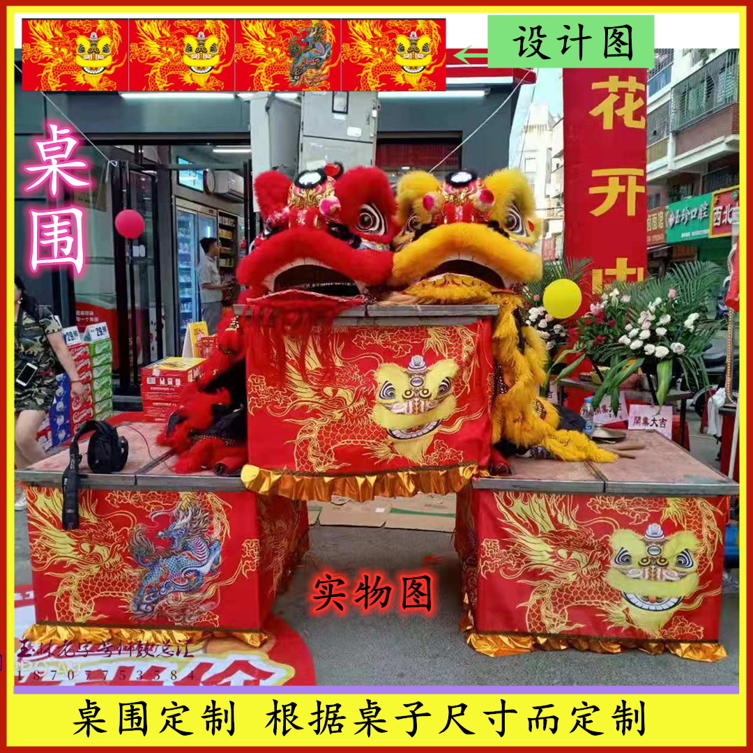 Custom Mall Opening Dance Lion Performance Awakening Lion Dance Performance Triangle Quadrilateral Exchange Flag Drum Surround Table Cloth Couplets Canvas Strips