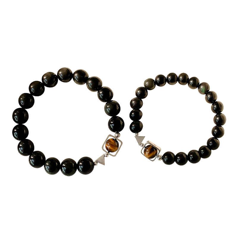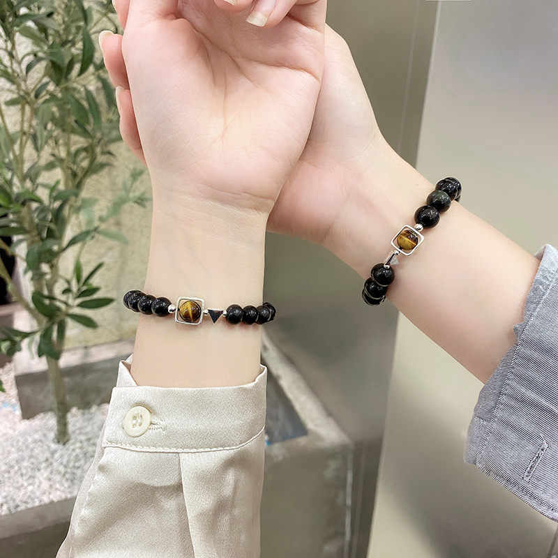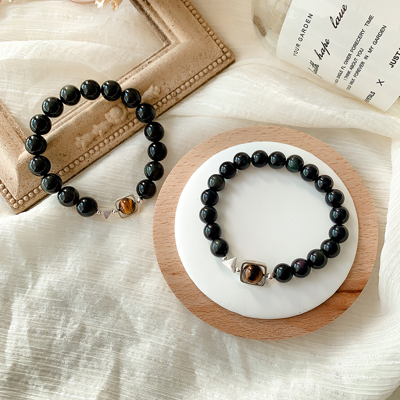 Natural obsidian couple bracelet pair sterling silver Korean version niche design sense 520 Valentine's Day commemorative gift