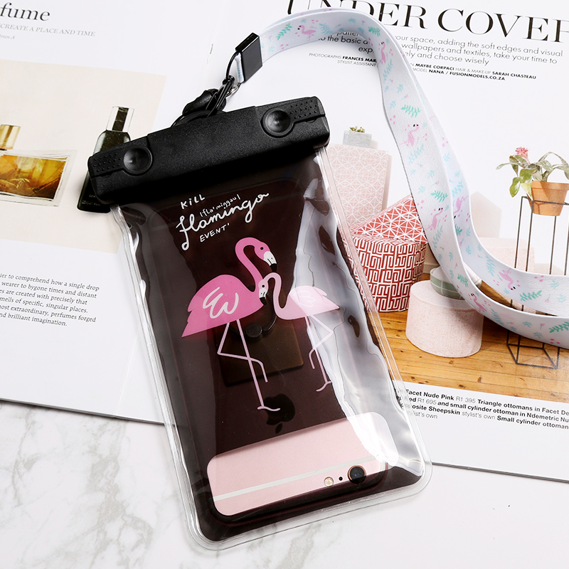 Special cabinet new flamingo cartoon mobile phone waterproof bag transparent hanging neck iPhones X touch screen personality waterproof bag woman